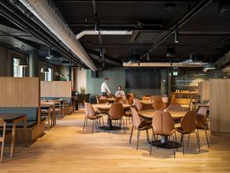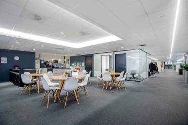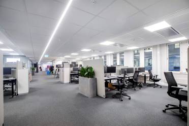 Lokalet kan tilpasses nye leietakeres behov og ønsker, men har i dag stilrene farge- og materialvalg, god standard og moderne detaljer. Store vinduer sørger for rikt, naturlig lys og lokalet har fine, sosiale soner, stillerom og store, godt utstyrte møterom. I tillegg til flotte kontorområder er det også garderobe, toaletter og te-kjøkken, og leietakere får benytte en ny, flott personalrestaurant i bygget.