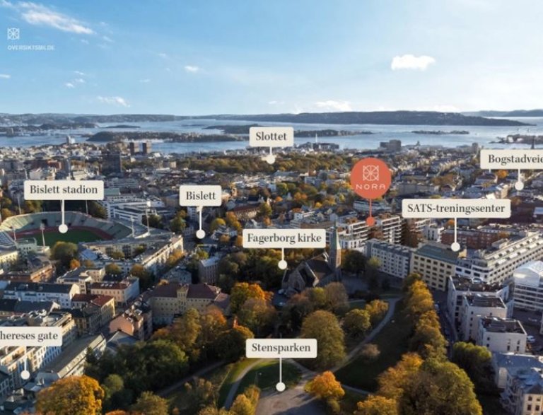 Med den grønne Stensparken i ryggen, kort gange til det pulserende livet i Bogstadveien og rolige smågater på Fagerbord -og ikke minst panoramautsikt over Oslo fra takterrassene - er urbane Nora noe for seg selv.